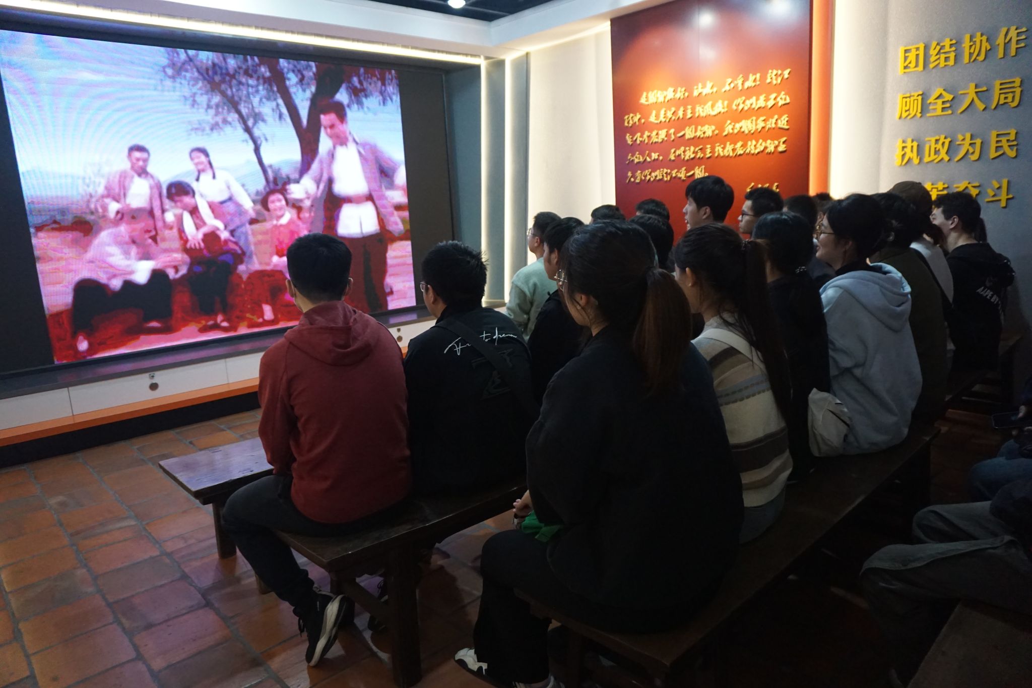 馆内观看《龙江颂》片段