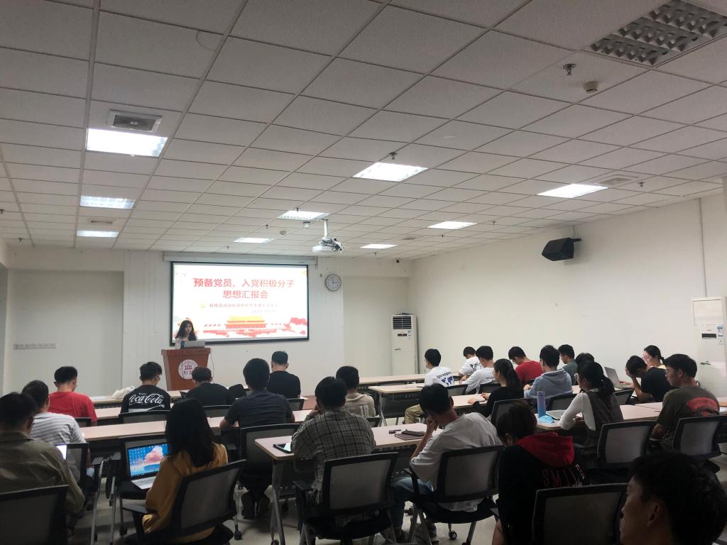 为更好地了解预备党员和入党积极分子近期各项情况,加强支部同志之间的沟通交流,10月28日下午,研究生第五党支部在机电信息实验大楼B247会议室举行预备党员、入党积极分子思想汇报会。会议由支部党员江安娜主持,全体正式党员、预备党员和入党积极分子与会。