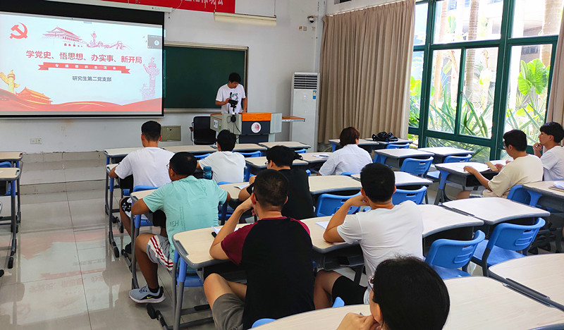 7月15日下午,研究生第二党支部在综合教学楼F2-102教室举行党史学习教育专题组织生活会。支部全体党员与会,会议由支委周东方主持。