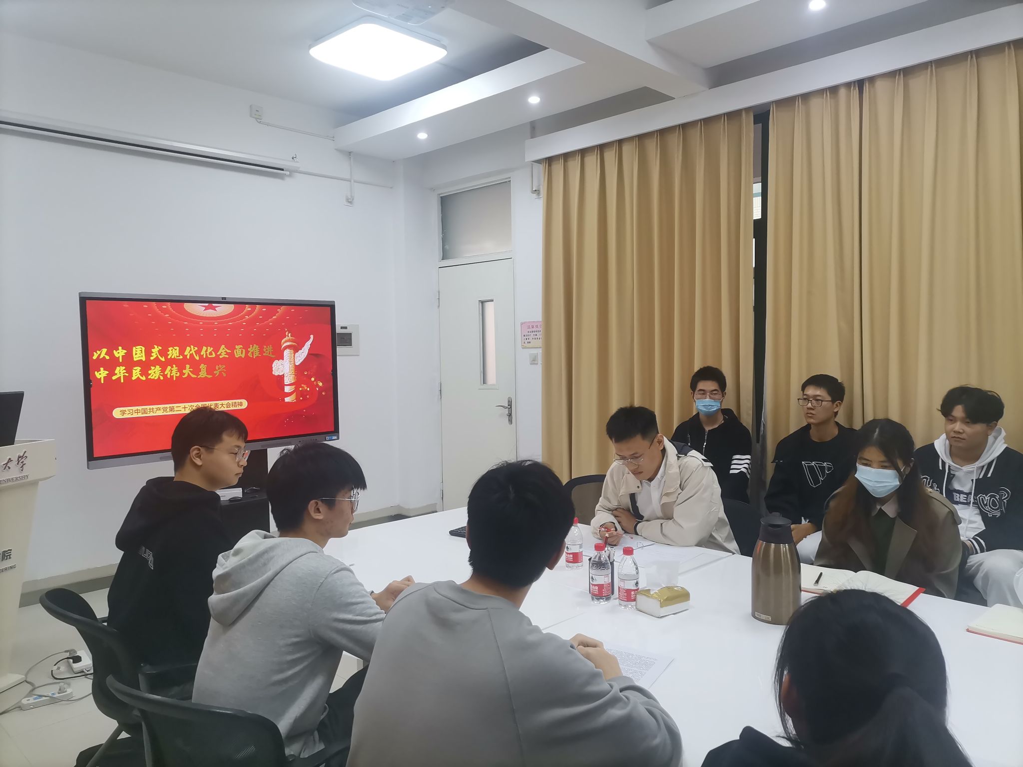 活动由支部书记郭伟斌主持,并邀请马克思主义学院副教授黄孔雀、青年教师孟祥龙作党的二十大精神专题分享,支部全体党员及部分入党积极分子与会。