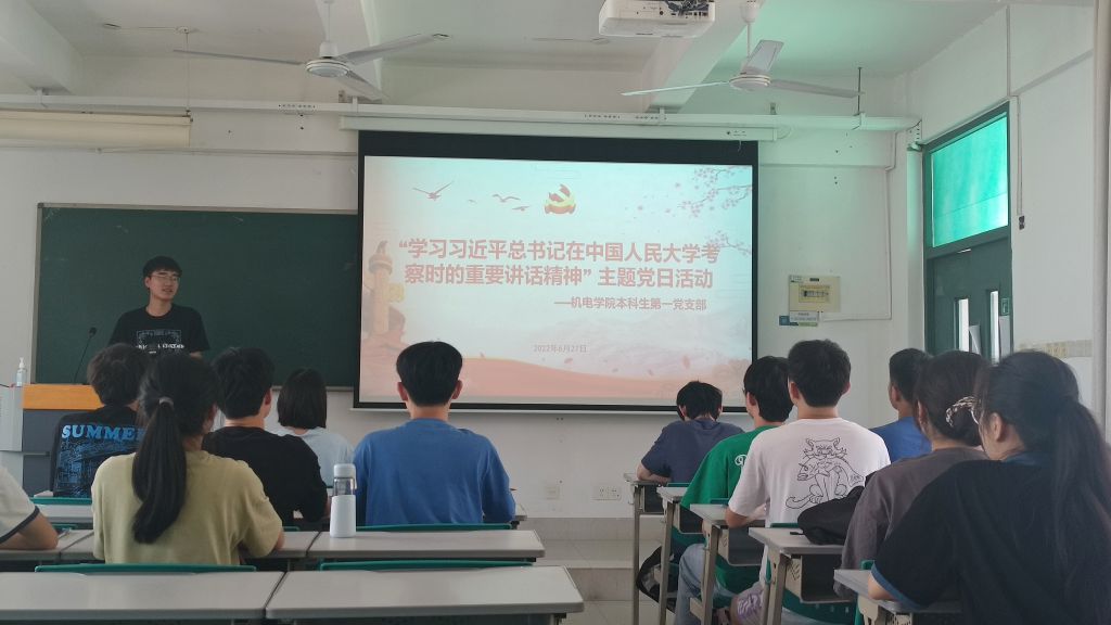 6月27日上午,本科生第一党支部在综合教学楼群C1-304教室举行“学习习近平总书记在中国人民大学考察时的重要讲话精神”主题党日活动。活动由支部宣传委员孙嘉铖主持。