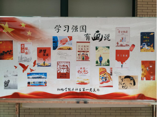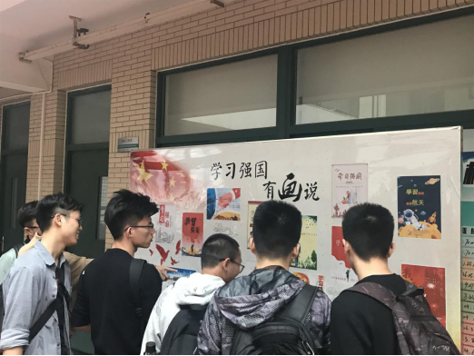 16张高质量的作品展出后,吸引了许多同学前来观展。很多同学驻足观看,时而与周围同学热烈讨论,他们纷纷发表自己的看法与感悟。邱雨桐同志说,“学习强国”是加强我国人民思想政治建设的有力臂膀,我们身处一个新的时代,唯有不断学习,不断提高理论、思维、技能水平,我们才能驾驭住时代的巨轮,在未知的风浪之中以先进思想武装自己,将新时代新中国展现给世界。周双豪同志表示,本次党支部活动,是为了弘扬五四精神,爱国主义精神,加强青年的理论学习。今年是新中国成立七十周年,同时也是五四运动一百周年,我们作为当代的新青年,要不忘初心,牢记使命,弘扬先辈不怕吃苦,不怕牺牲的精神,我们应该不负先辈所托,为了更加繁荣强大的中国而奋斗。刘静同志提到,通过每天在“学习强国”平台上的学习,她渐渐将学习党的理论知识以及时政新闻热点当做一个习惯。在这个平台中,既能了解祖国日新月异的变化,还能学习到与时俱进的新思想,有助于我们提高个人的党性修养,跟紧党的步伐。