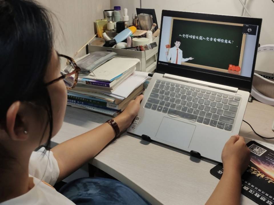入党积极分子梁新茹表示:“从一大到十九大,再到即将到来的党的二十大,在党的领导下,中国特色社会主义进入新时代,全面建成小康社会,开启了全面建设社会主义现代化国家的新征程。通过这次主题党日的学习,让我加深了对党的认识,也使我加入党组织的信念更加坚定!”