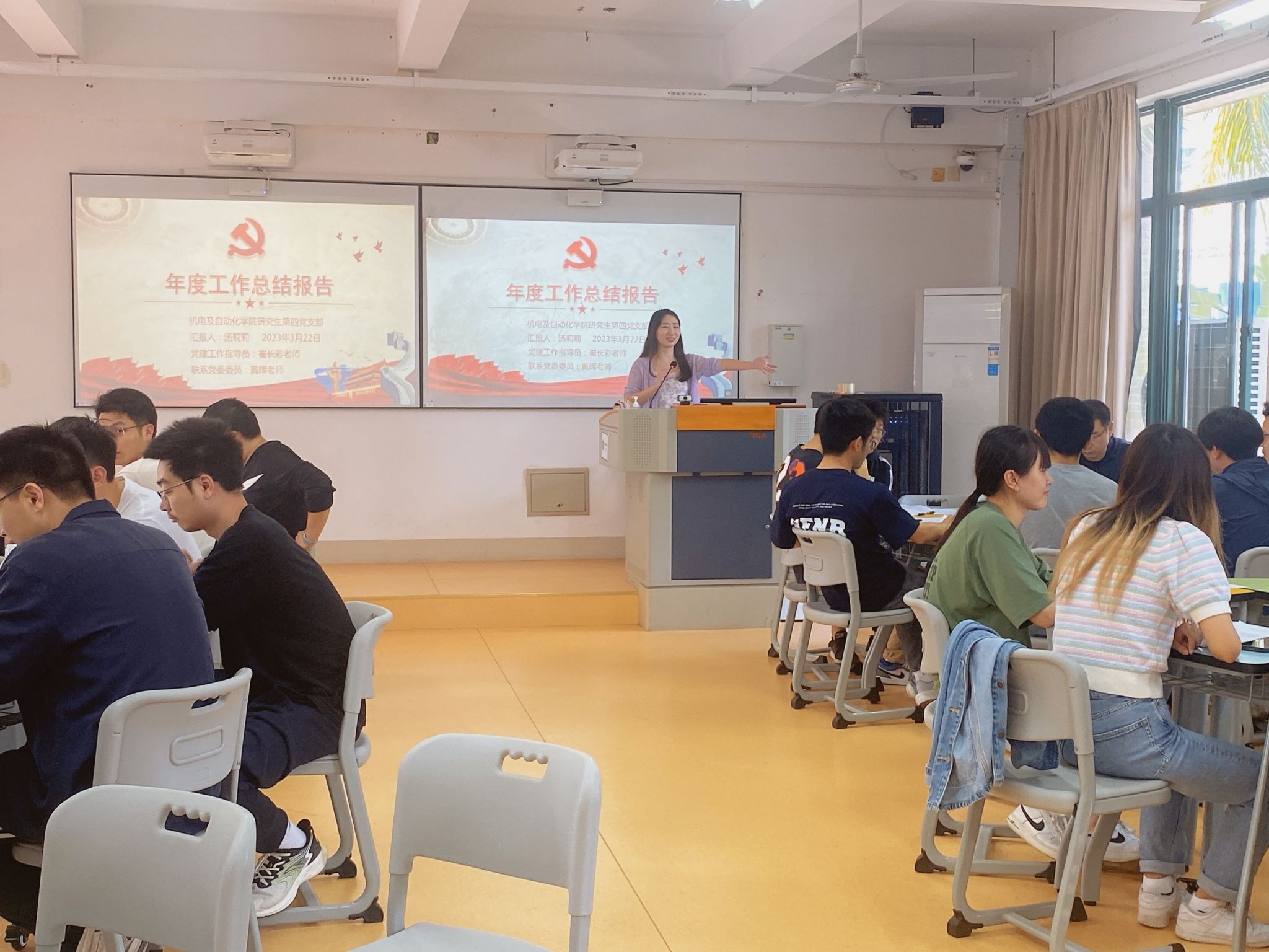 会上,汤莉莉会从支部基本情况、特色活动等方面对支部一年以来的工作的进行了详细报告,并针对学习强国、立项活动等方面提出今后工作开展的具体思路。她表示,支部成员要积极联系,相互沟通,为支部建设献力献策。