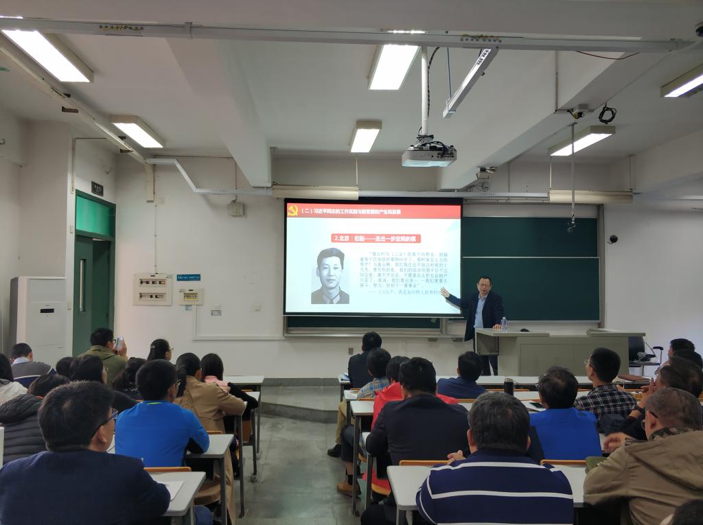 2018年12月18日下午,伟德BEVlCTOR1946公司党委邀请到哲学与社会发展学院教授、图书馆馆长——李志强老师在厦门校区教学楼D4-101教室为全院师生党员作习近平新时代中国特色社会主义思想宣讲报告,李老师的宣讲主题是“全面准确把握习近平新时代中国特色社会主义思想”,报告会由公司党委书记谢俊荣主持,学院领导、教师党员和员工党员共200余人聆听了李老师的宣讲。