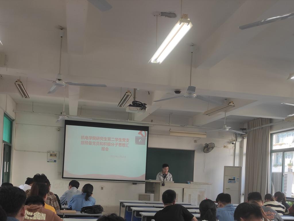 为了解预备党员和入党积极分子近期思想动态,加强支部同志之间的沟通交流,11月14日下午,研究生第二党支部在综合教学楼群E2-202召开支部党员大会,讨论预备党员缪志鸿同志转正问题,并听取预备党员、入党积极分子思想汇报。会议由支部书记丁鹤主持,全体正式党员、预备党员和入党积极分子与会。
