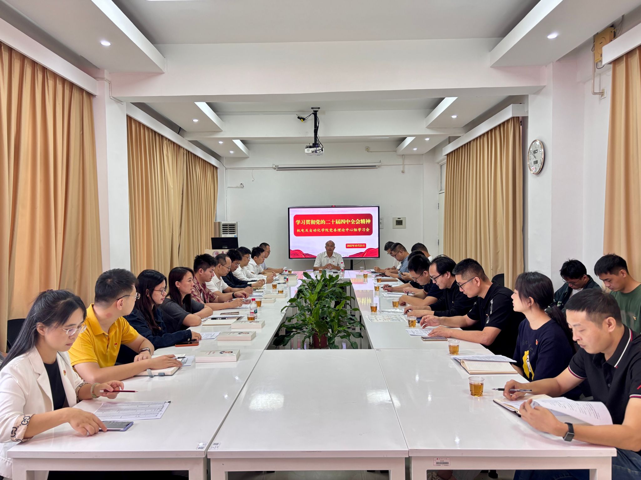 张灯指出,认真学习《习近平谈治国理政》第五卷,是用习近平新时代中国特色社会主义思想武装全党、教育人民、指导实践的重要举措。学好用好《习近平谈治国理政》第五卷是当前和今后一个时期的重大政治任务,各党支部要精心组织安排,引导广大党员持之以恒读原著、学原文、悟原理,切实做到学思用贯通、知信行统一。张灯表示,党的二十届四中全会正在北京召开。各党支部要将学习贯彻全会精神与落实习近平总书记重要讲话精神相结合,与推动学院“十四五”规划收官、“十五五”规划谋划相衔接,凝聚起“和美机电,争创一流”的思想共识和行动合力。