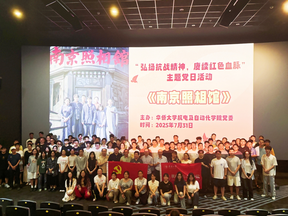 为纪念中国人民抗日战争暨世界反法西斯战争胜利80周年,推动党史学习教育常态化长效化,弘扬伟大抗战精神,铭记历史真相、传承红色基因,7月31日下午,公司党委组织师生党员和入党积极分子在幸福蓝海国际影城开展“弘扬抗战精神,赓续红色血脉”主题党日活动,集体观看抗战题材影片《南京照相馆》。公司党委书记张灯、副经理张勇、党委副书记余桦等110余名师生参加党日活动。