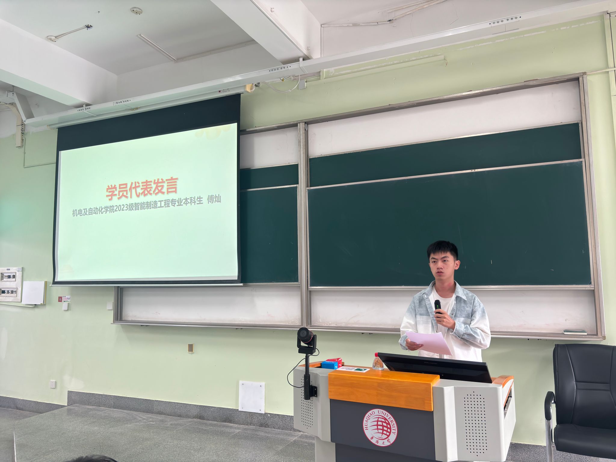 伟德国际1946官网团委副书记、2023级智能制造工程专业本科生傅灿作为学员代表发言。他以“珍惜、学习、奉献”三个关键词展开,表示要珍惜这次宝贵的学习机会,夯实理论基础,并以此为契机,珍惜时光,珍惜时代赋予的宝贵机遇,努力提升自身能力,以实际行动践行“请党放心,强国有我”的誓言,为中华民族伟大复兴贡献青春力量。