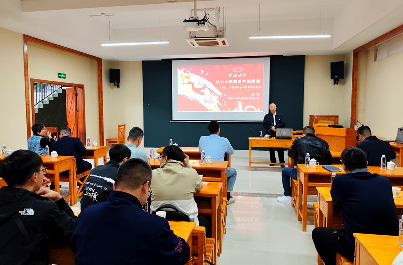 签约仪式后,张灯为在场党员讲授党的二十届四中全会精神专题党课。他以“中流击水:从六大原则看中国规划”为题,介绍了全会的基本概况和重要意义,用“1234567”生动概括了全会通过的《中共中央关于制定国民经济和社会发展第十五个五年规划的建议》的主要内容,阐释了全会提出的新概念新观点新提法,并深入解读了“十五五”时期必须遵循的六大原则。张灯表示,本次校社企三方党支部共建,正是对“六个坚持”的具体践行。通过党建引领,将理论学习成果转化为推动科技创新、服务地方发展的实际行动,是此次合作的初衷与使命。此次专题党课也是伟德国际1946官网“智造先锋”讲师团首次走出校园宣讲党的二十届四中全会精神。