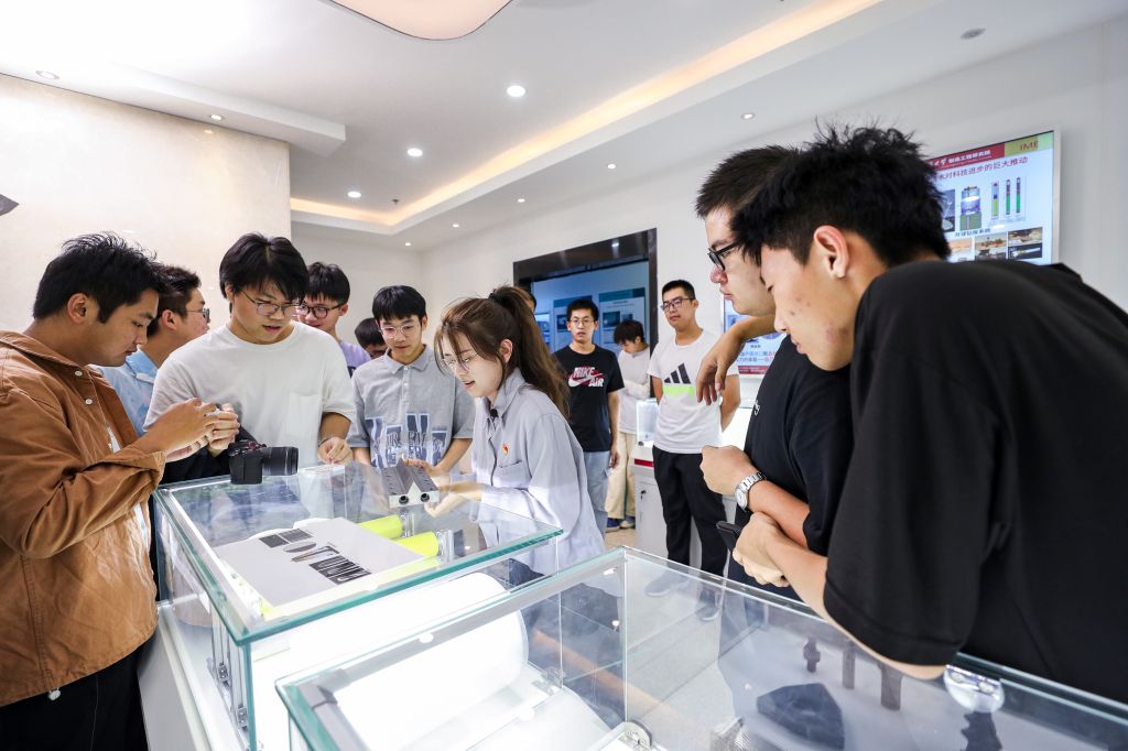 研究生第五党支部书记江安娜为新生们展示了支部同志利用先进制造技术精心制作的展品,包括3D打印的承露泉、厦门校区行政研发大楼、校大门、钎焊制作的校训牌、廖承志董事长与叶飞将军石像等,一系列的精美展品引得同学们赞叹不已,对展品的加工方法展开了热烈的讨论。