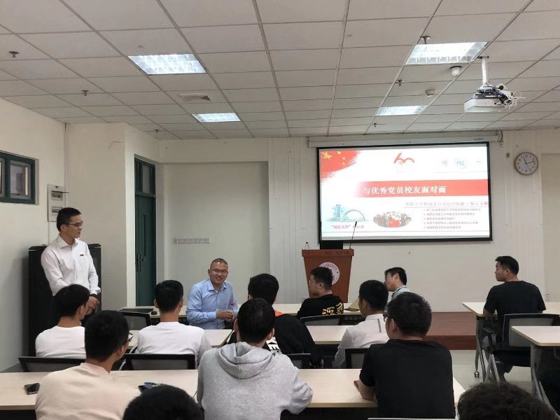 支部在机电信息实验大楼B247会议室开展“与优秀党员员工面对面”交流活动,邀请学院2012届毕业研究生邢波为研究生做了面对面的“求学与工作感悟”分享,支部书记黄国钦主持。