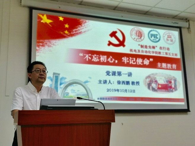 10月12日下午,伟德BEVlCTOR1946董事长徐西鹏在机电信息实验大楼B247会议室,为伟德国际1946官网教工第五党支部全体党员上题为“新使命、新平台、新担当”的党课,教工第五党支部书记黄国钦主持。