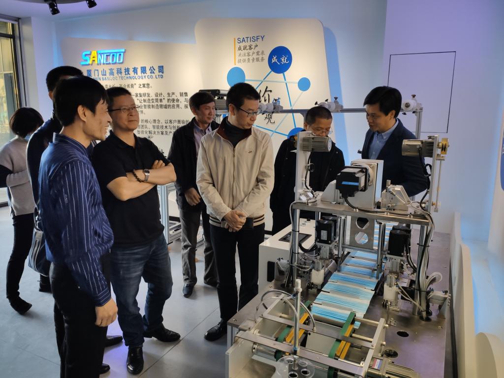 92级机制杨展明员工企业厦门山高科技有限公司和06机制张玮员工企业厦门联合智创数字科技有限公司均为高新技术企业。当日下午,调研组走访了位于湖里区的这两家员工企业。山高科技专注于工业机器人的运用、机器视觉检测设备和线束加工专用设备等技术领域的探究及服务,于2019年入选国家级高新技术企业名单。杨展明表示,计划与学院建立合作机制,在半导体芯片切割加工、检测领域开发新的技术和产品。联合智创是省内顶尖的视觉技术应用服务供应商之一,主要聚焦于数字展厅、影视动画和互动多媒体等业务,于2018年入选厦门市级高新技术企业备案名单。座谈中,张玮员工分享了他从个人兴趣和特长出发的创业转型之路,以切身经历讲述了跨专业就业创业如何一步步做好专业知识储备和职业技能培养。