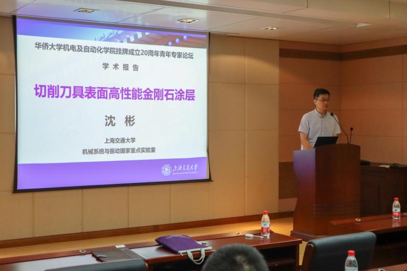 随后,沈彬副研究员为大家带来学术报告《切削刀具表面高性能金刚石涂层制备技术》。沈彬老师对于目前国内外技术环境进行了分析介绍,并表示切削刀具与工件材料是“矛”与“盾”的关系,为了使得切削刀具可以正常地加工工件材料,必须要“矛”强于“盾”,由于国外技术封锁,我国高性能金刚石涂层技术唯一的路径就是自主研发。沈彬老师团队开发的金刚石涂层刀具应用于 C919 大型客机的水平尾翼的制孔加工,成功解决了进口刀具无法解决的加工难题。