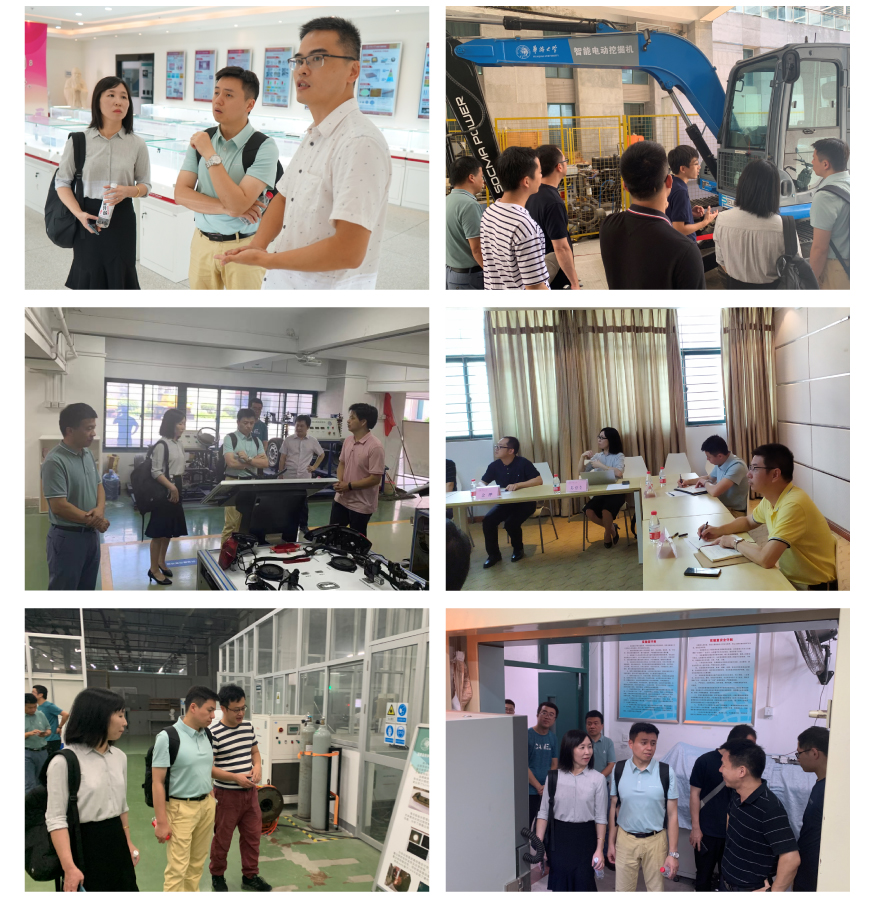 首先,黄国钦详细介绍了学院的发展历程与优势领域,带领参观了制造工程研究院展厅、省特种能场制造重点实验室、新能源工程机械实验室、车辆工程实验室及锂电池热安全实验室。