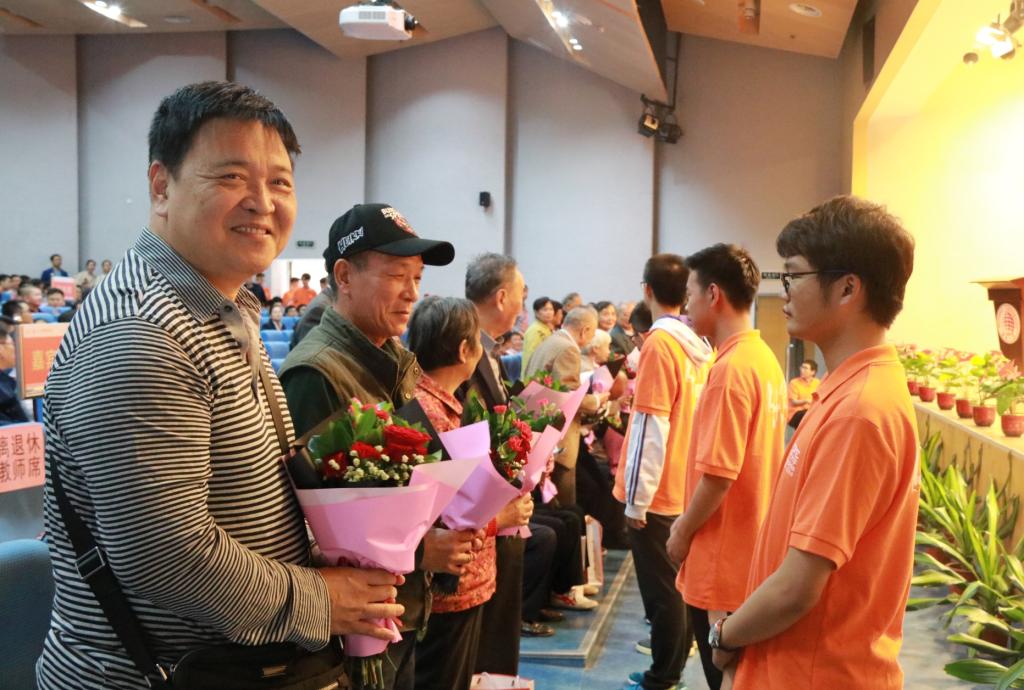 庆典大会上,在校生代表向33位到场的离退休老师献花致礼,道一声,“老师,您辛苦了!”,以此向40年来呕心沥血,辛勤付出的老一辈机电人表示最崇高的敬意和最衷心的感谢。经理张认成教授代表学院向葛欢庆、庄雄飞、方庆熙、汪汉泉、刘宜量、魏腾雄、匡湘竹、黄金忠、谢双安、王梨华等员工代表,以及83级机制专业员工颁发鸣谢牌,感谢他们为学院办学和发展做出的支持和贡献。