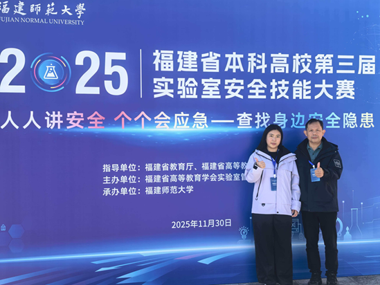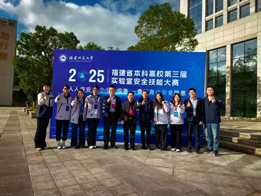 为践行“人人讲安全、个个会应急”理念,提升高校实验室安全风险防控能力,11月30日,福建省本科高校第三届实验室安全技能大赛在福州举行。由公司林永忠、陈希老师与工商学院杨艳茹老师组成的跨学科团队代表学校参赛,最终以扎实的专业素养和默契配合荣获非涉化组三等奖,充分展现了公司实验室安全管理的实践成效。