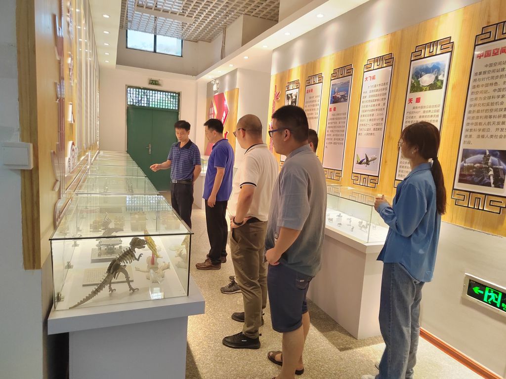 刘主任首先简要介绍了工程训练中心的发展历程,并邀请陈处长参观中心的作品展览柜,讲解了弘扬中华文化的系列作品,如十二生肖、四非、冰墩墩、象棋、鲁班锁等。