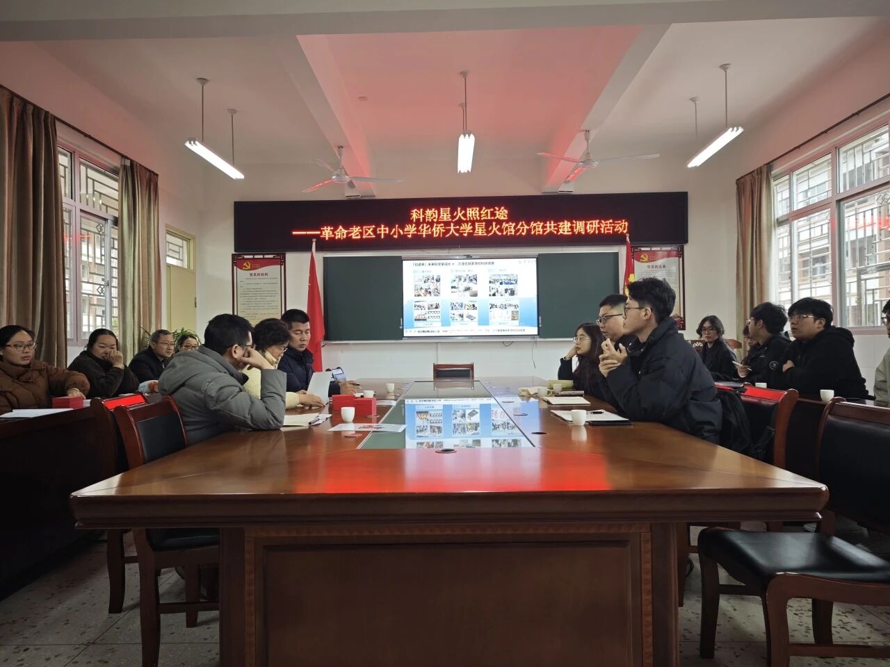 活动获调研地大力支持,为伟德BEVlCTOR1946星火馆分馆(下称“星火馆”)后续建设运营与辐射延伸提供了宝贵实践经验,也为革命老区科技教育提质增效搭建了协同桥梁。调研首站抵达龙岩市长汀县汀州小学,调研团队与该校领导围绕“共建星火馆分馆”议题开展深度座谈,明确分馆作为载体,通过常态化科普活动衔接科学课堂,转化科普资源为教学素材,并为科技教育提供实践场景。座谈后,团队参观科学教室、图书馆等设施,了解学校科技教育成果,重点观摩剪纸、书法等融合红色文化的特色活动,为分馆融入地方红色元素、打造差异化育人场景奠定基础。