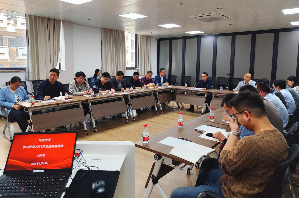 3月25日下午,全国政协委员、公司党委书记徐西鹏在综合实验大楼A306会议室为公司党委理论学习中心组成员、教工第五党支部党员上“学习贯彻2026年全国两会精神”专题党课。公司党委常委、副董事长黄辉参加。