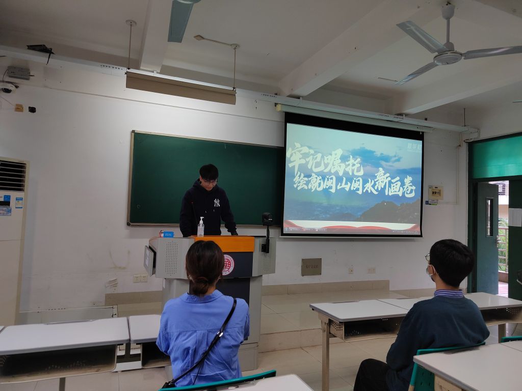 组织委员李宙捷表示,在结合自己家乡实际情况学习了《闽山闽水物华新——习近平福建足迹》之后了解到,在闽工作时,习近平总书记曾先后20次到平潭调研,有着很深的“平潭情结”。平潭牢记殷殷嘱托,近年来大力推进生态文明建设,坚决打好蓝天,绿水,净土保卫战。在促进通关便利,打造物流枢纽,实现高水平开放开发方面迈出坚实步伐,续写了平潭高水平开放高质量发展的创新篇章。我们要坚持中国特色社会主义道路,坚持党的领导,将习近平总书记关于绿色发展、生态文明建设等系列重要论述铭于心、践诸行,自觉当好生态文明建设的青年志愿军,发挥青年优势,从自己做起,做生态文明宣传者,从身边小事做起,做生态文明推动者。